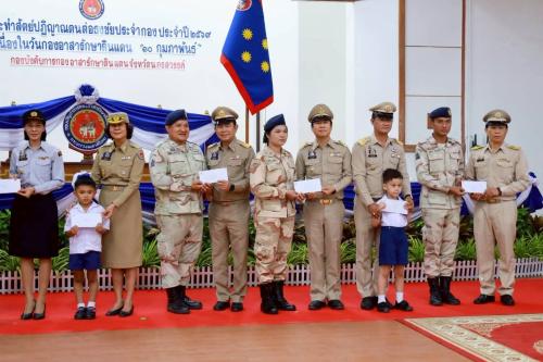 โดยในพิธี ผู้บังคับการกองอาสารักษาดินแดนจังหวัดนครสวรรค์ ได้ประกอบพิธีทางศาสนา จุดธูปเทียนบูชาพระรัตนตรัย จากนั้นได้เชิญธงชัยประจำกอง ประจำแท่นรับการเคารพ จากนั้นผู้บังคับการกองอาสารักษาดินแดนจังหวัดนครสวรรค์ ได้กล่าวคำปฏิญาณ และอ่านสารผู้บัญชาการกองอาสารักษาดินแดน พร้อมให้โอวาทแก่สมาชิกกองอาสารักษาดินแดน และมอบเข็มอาสารักษาดินเดนสดุดี จำนวน 21 ราย / มอบใบประกาศเกียรติคุณ ให้แก่กำลังพลสมาชิกกองอาสารักษาดินแดนที่ไปปฏิบัติหน้าที่ ในพื้นที่อำเภอหาดใหญ่ จังหวัดสงขลา จำนวน 74 ราย / มอบทุนการศึกษาของมูลนิธิอาสารักษาดินแดน ในพระบรมราชินูปถัมภ์ จำนวน 4 ราย / และมอบทุนการศึกษาให้กับนักเรียนและตัวแทน ทุนการศึกษาแม่บ้านมหาดไทย จำนวน 107 ราย