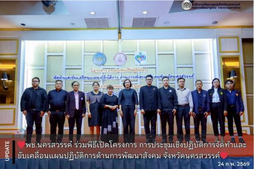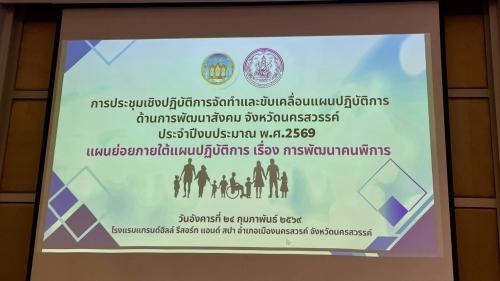 นางสาวชุติพร เสชัง ผู้ว่าราชการจังหวัดนครสวรรค์ เป็นประธานเปิดโครงการ การประชุมเชิงปฏิบัติการจัดทำและขับเคลื่อนแผนปฏิบัติการด้านการพัฒนาสังคม จังหวัดนครสวรรค์ ประจำปี 2569 โดยมีนางเอื้องดอย กีรติบริบูรณ์ พัฒนาสังคมและความมั่นคงของมนุษย์จังหวัดนครสวรรค์ พร้อมด้วยคณะอนุกรรมการส่งเสริมและพัฒนาคุณภาพชีวิตคนพิการจังหวัดนครสวรรค์ ผู้แทนจากหน่วยงานภาครัฐภาคเอกชน องค์กรปกครองส่วนท้องถิ่น คนพิการ ครอบครัวของคนพิการ ผู้ดูและคนพิการ และอาสาสมัครเครือข่ายด้านคนพิการ เข้าร่วมในโครงการดังกล่าว