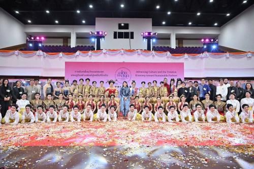 จากนั้น ทอดพระเนตรนิทรรศการผลิตภัณฑ์ผ้าและงานหัตถกรรมจากโครงการหลวง และโครงการพัฒนาและยกระดับผลิตภัณฑ์หัตถกรรมพื้นเมืองล้านนาสู่สากล (โคโยริ) ซึ่งเป็นความร่วมมือของครูช่างไทยและญี่ปุ่น พร้อมภาคีเครือข่าย โดยน้อมนำแนวพระราชดำริของสมเด็จพระนางเจ้าสิริกิติ์ พระบรมราชินีนาถ พระบรมราชชนนีพันปีหลวง และสมเด็จพระเจ้าลูกเธอ เจ้าฟ้าสิริวัณณวรี นารีรัตนราชกัญญา มาพัฒนาผลิตภัณฑ์ผ้าและหัตถกรรมท้องถิ่นให้มีมูลค่าเพิ่มผ่านการออกแบบร่วมสมัย ผสมผสานเทคนิคดั้งเดิม อาทิ การสาธิตการเขียนขี้ผึ้งบนผ้าใยกัญชง “ลายโบราณ” ซึ่งเป็นลวดลายพื้นถิ่นของชาวม้ง โดยวิสาหกิจชุมชนดาวม่างงานผ้าใยกัญชง ซึ่งดำเนินการผลิตตั้งแต่การปลูกจนถึงการแปรรูปเป็นเครื่องแต่งกาย และได้รับความนิยมจากลูกค้าชาวต่างประเทศ โดยเฉพาะชาวจีนที่ชื่นชอบลวดลายและคุณสมบัติของผ้าใยกัญชงย้อมสีธรรมชาติ ก่อนเสด็จกลับ ทอดพระเนตรการแสดงชุด “ศรีสิริวัณณาภิรมย์ งามสมแดนดินล้านนา” แสดงโดยนักศึกษาหลักสูตรนาฏศิลป์ศึกษา หลักสูตรศิลปะการแสดง หลักสูตรดนตรีสากล คณะมนุษยศาสตร์และสังคมศาสตร์ และหลักสูตรพลศึกษา คณะครุศาสตร์ มหาวิทยาลัยราชภัฏเชียงใหม่ พร้อมภาคีเครือข่าย รวม 105 คน ถ่ายทอดแนวคิดการเดินทางแห่งศรัทธาและความจงรักภักดีของชาวล้านนา ผ่านศิลปวัฒนธรรมอันงดงามที่สืบทอดจากอดีตสู่ปัจจุบัน โดยแบ่งการแสดงเป็น 2 ช่วง ได้แก่ “นพบุรีศรีเชียงใหม่น้อมเทิดไท้พระองค์หญิง” และ “สุขสราญเชียงใหม่ไทยแลนด์” ผสานการแสดงศิลปวัฒนธรรมล้านนาเข้ากับการแสดงร่วมสมัย ประกอบดนตรีพื้นเมืองและดนตรีสากล